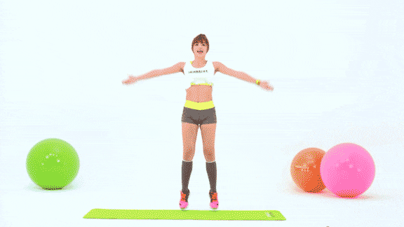 这两个动作是入门级的。开合跳的时候,步子尽量大一些,尽量往上蹦,落地时双脚要同时,可以略微屈膝,这样能给膝盖一些缓冲,起到保护膝盖的作用。